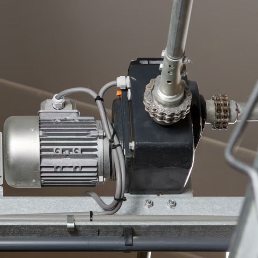 • 设置在驱动系统上蜗杆齿轮定位,使电机自动