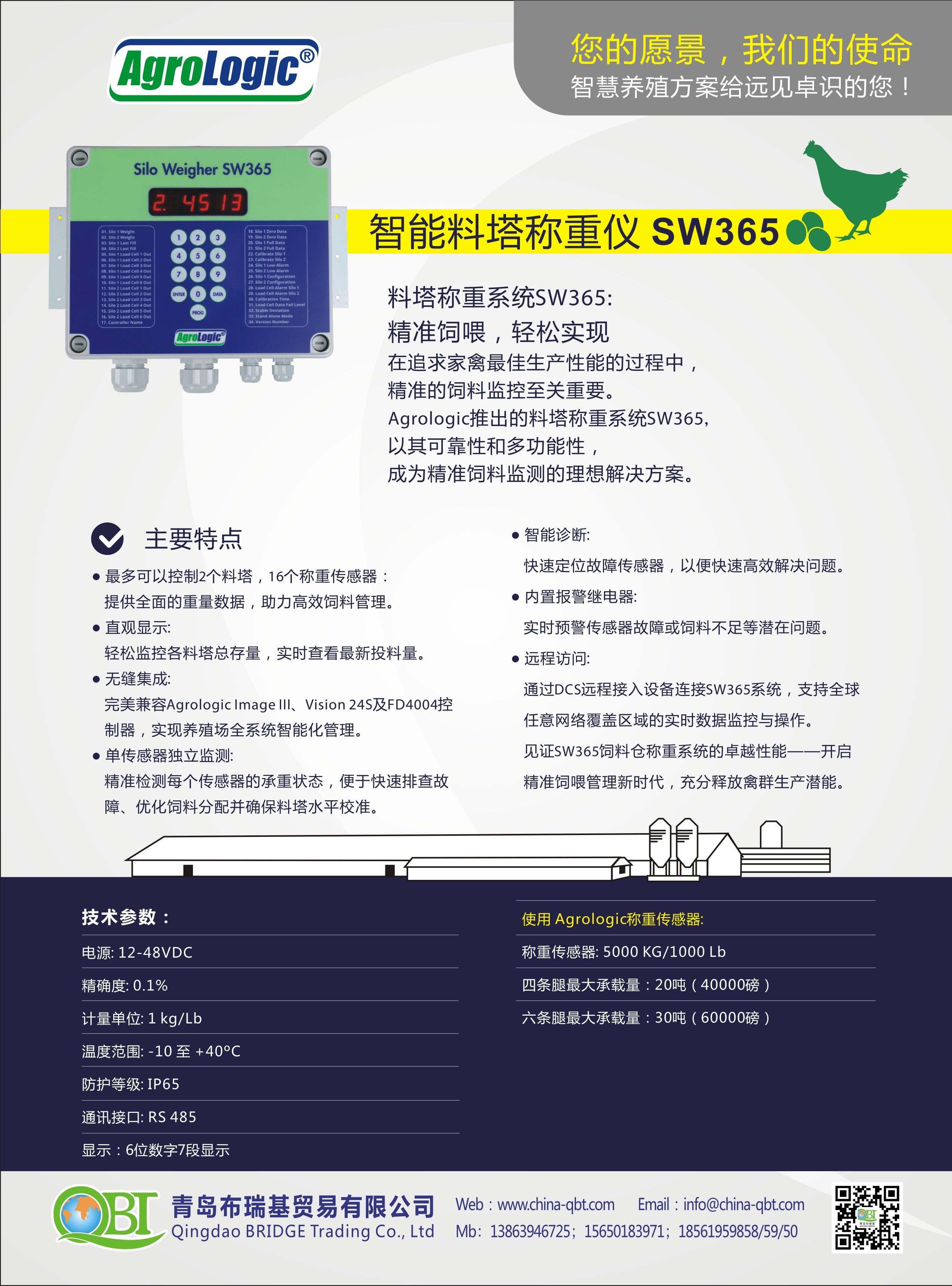 在精准农业领域,SW365是一款多功能、可靠的饲料筒仓称重机。SW365设计用于独立和集成使用,最多可支持2个进料筒仓,最多16个称重传感器
